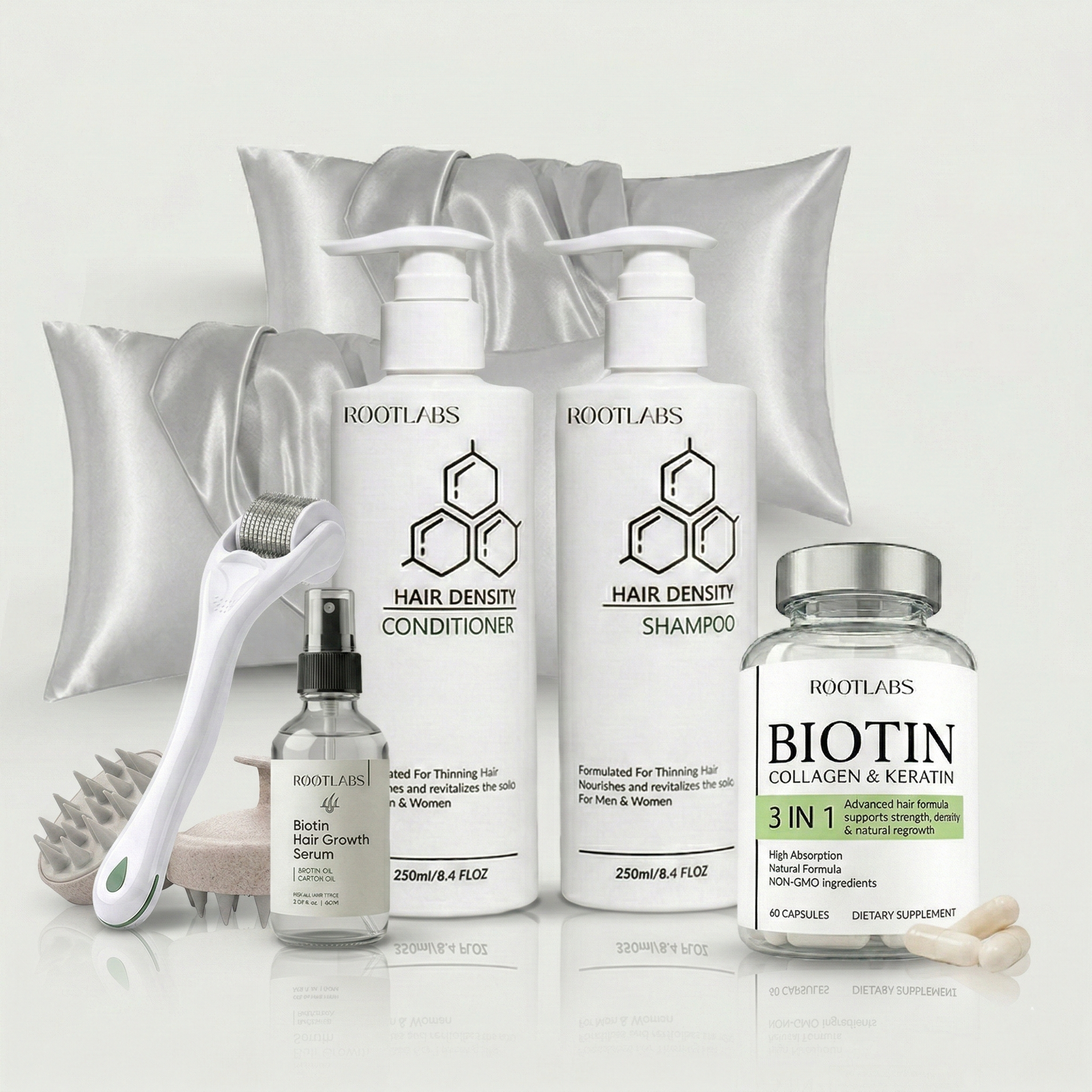 📦 Satin Pillowcase Kit — 2 satijnen kussenslopen die je nieuwe haargroei 's nachts beschermen tegen breuk.
